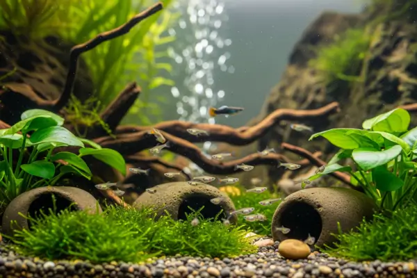 A criação desses refúgios também é benéfica para o equilíbrio do ecossistema dentro do aquário. Eles promovem a biodiversidade, oferecendo locais para que microorganismos e outras formas de vida, como pequenos camarões e invertebrados, se desenvolvam, contribuindo para a saúde geral do aquário. Ao adotar esse tipo de abordagem no aquarismo, você não só aumenta as chances de sucesso na reprodução, mas também cria um ambiente mais harmônico e sustentável para todos os habitantes do aquário.